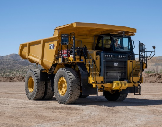 Зовнішній вигляд Caterpillar 775 відрізняється масивною, міцною конструкцією з високою посадкою, посиленою рамою та великим кузовом із зносостійкої сталі. Дизайн оптимізовано для максимальної стійкості та зручності завантаження/розвантаження в кар'єрах. Потужні фари та дзеркала забезпечують хорошу видимість.
