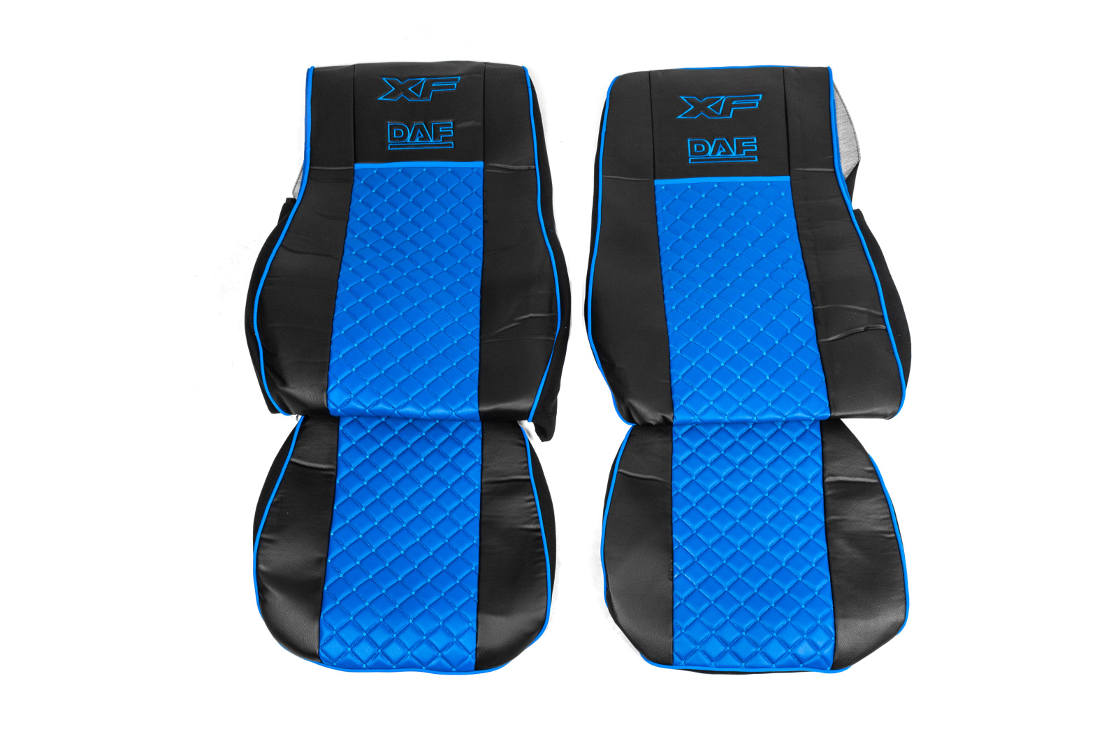 Чохли на сидіння Daf XF 105 екошкіра чорні з синьою вставкою