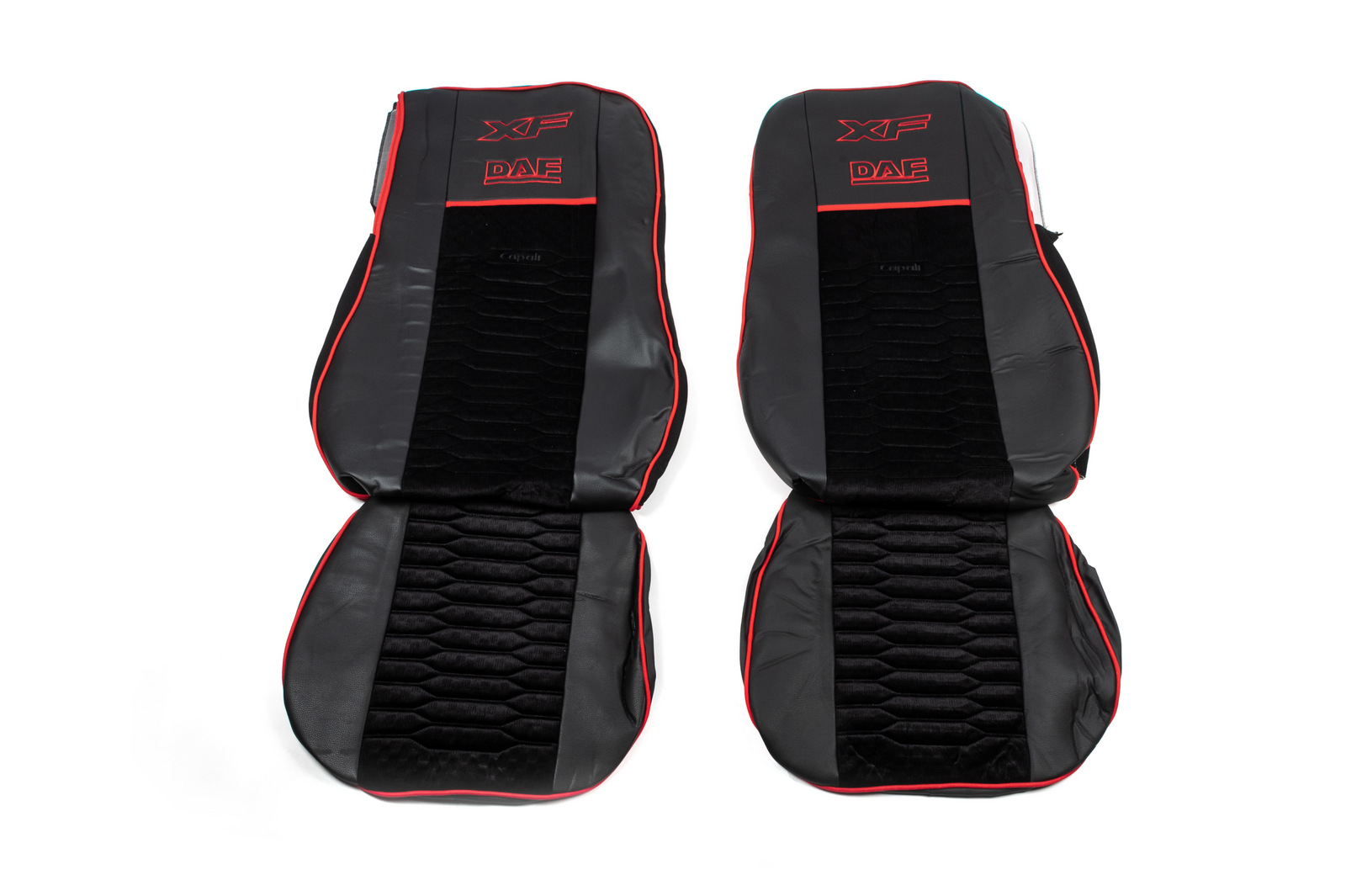 Чохли на сидіння Daf XF 106 екошкіра чорні + чорна велюрова вставка