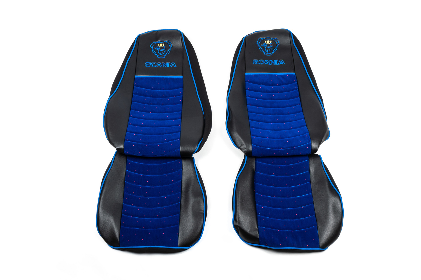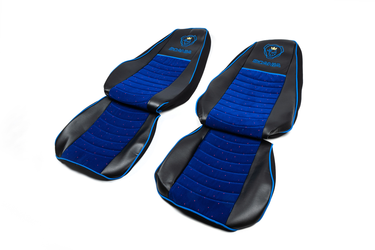 Чохли на сидіння Scania R400-420-440 (2008-2016) екошкіра + синя велюрова вставка