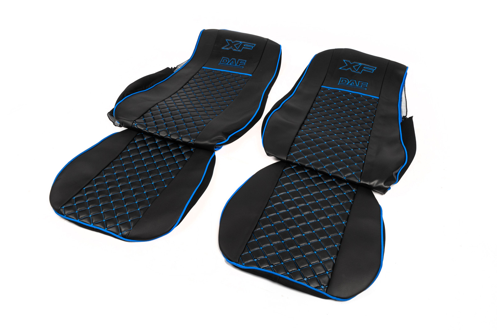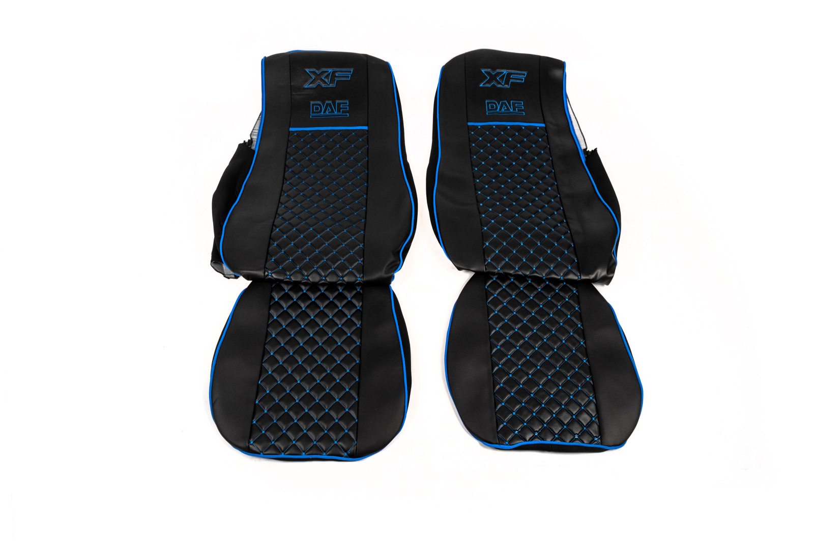 Чохли на сидіння Daf XF 105 екошкіра чорні з синьою прошивкою