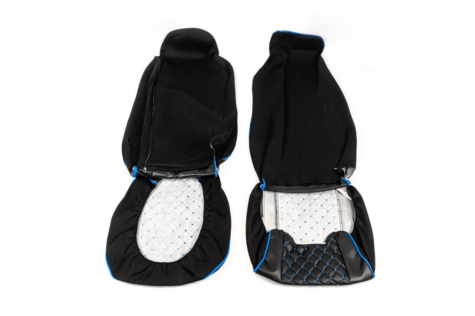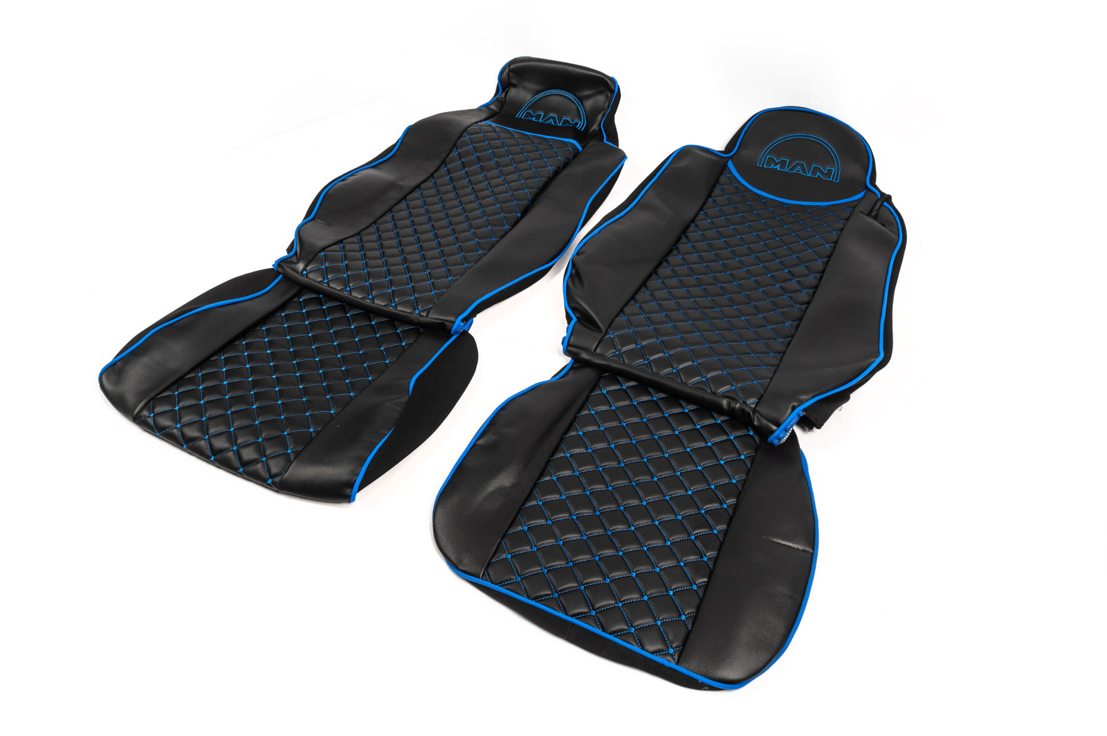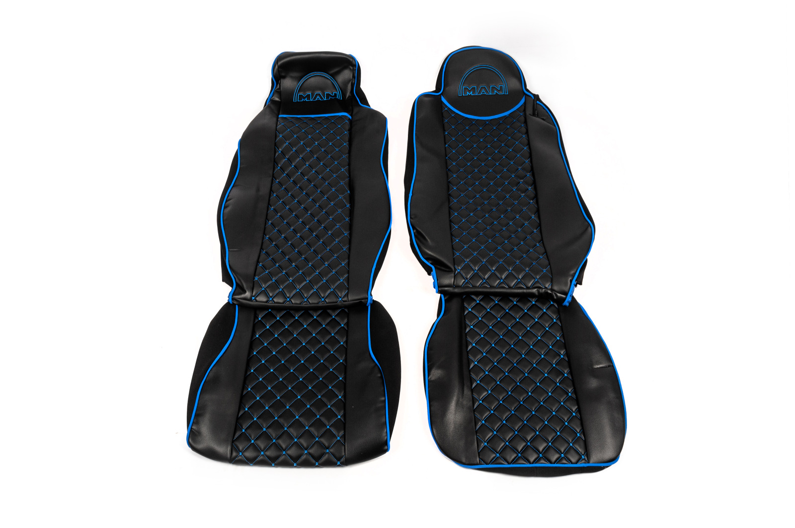 Чохли на сидіння Man TGX (2007-2014) екошкіра чорні з синьою прошивкою