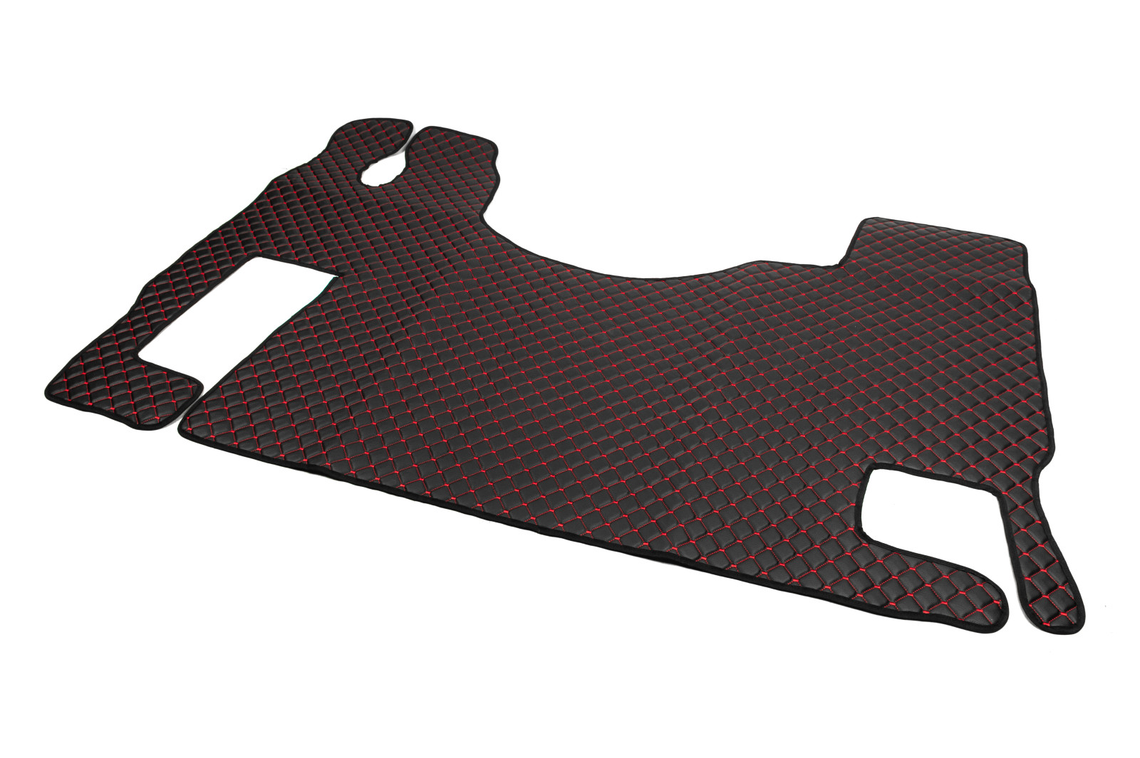 Килимок в салон Mercedes Benz Actros MP2(2003-2008)-MP3(2008-2011) екошкіра чорний з червоною прошивкою (автомат)