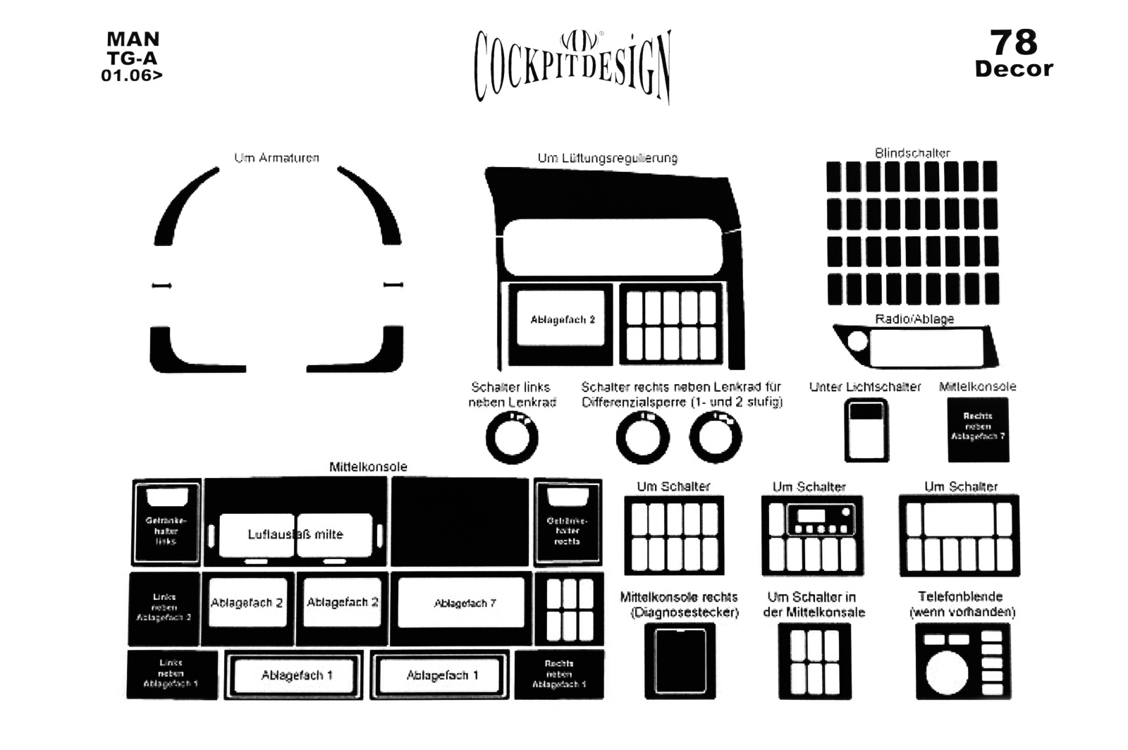 Накладки на панель Man TGA XXL (2006-...) (Meric, 78 деталей) 94000026