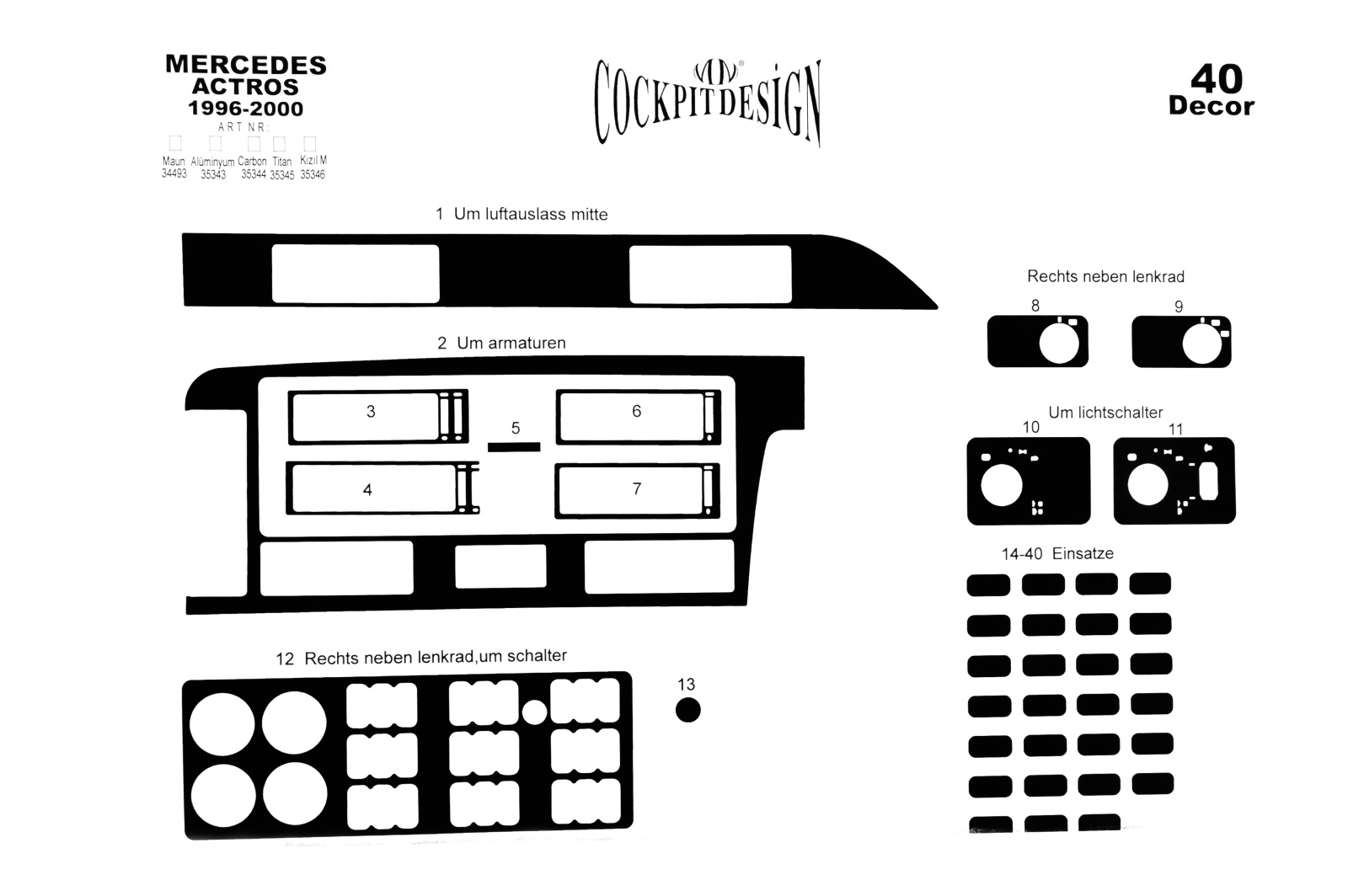 Накладки на панель Mercedes Actros MP1 1996-2000 (Meric, 40 деталей) 94000051
