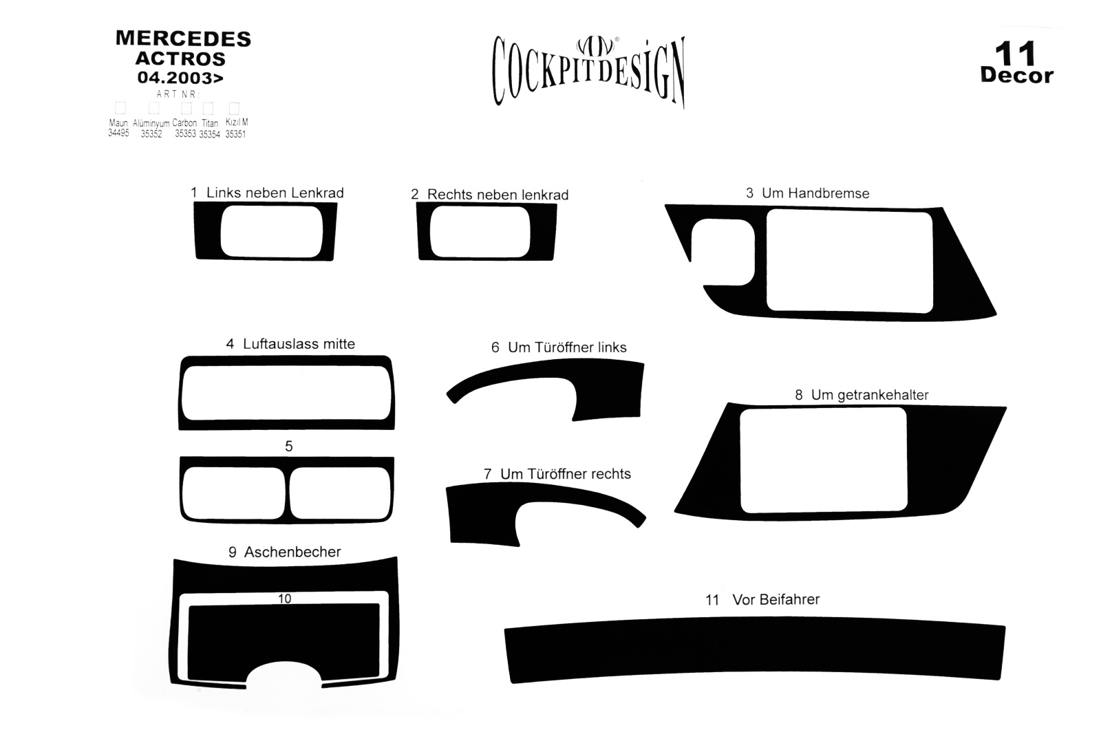 Накладки на панель Mercedes Actros MP2-MP3 2003-2016 (Meric, 11 деталей) 94000054
