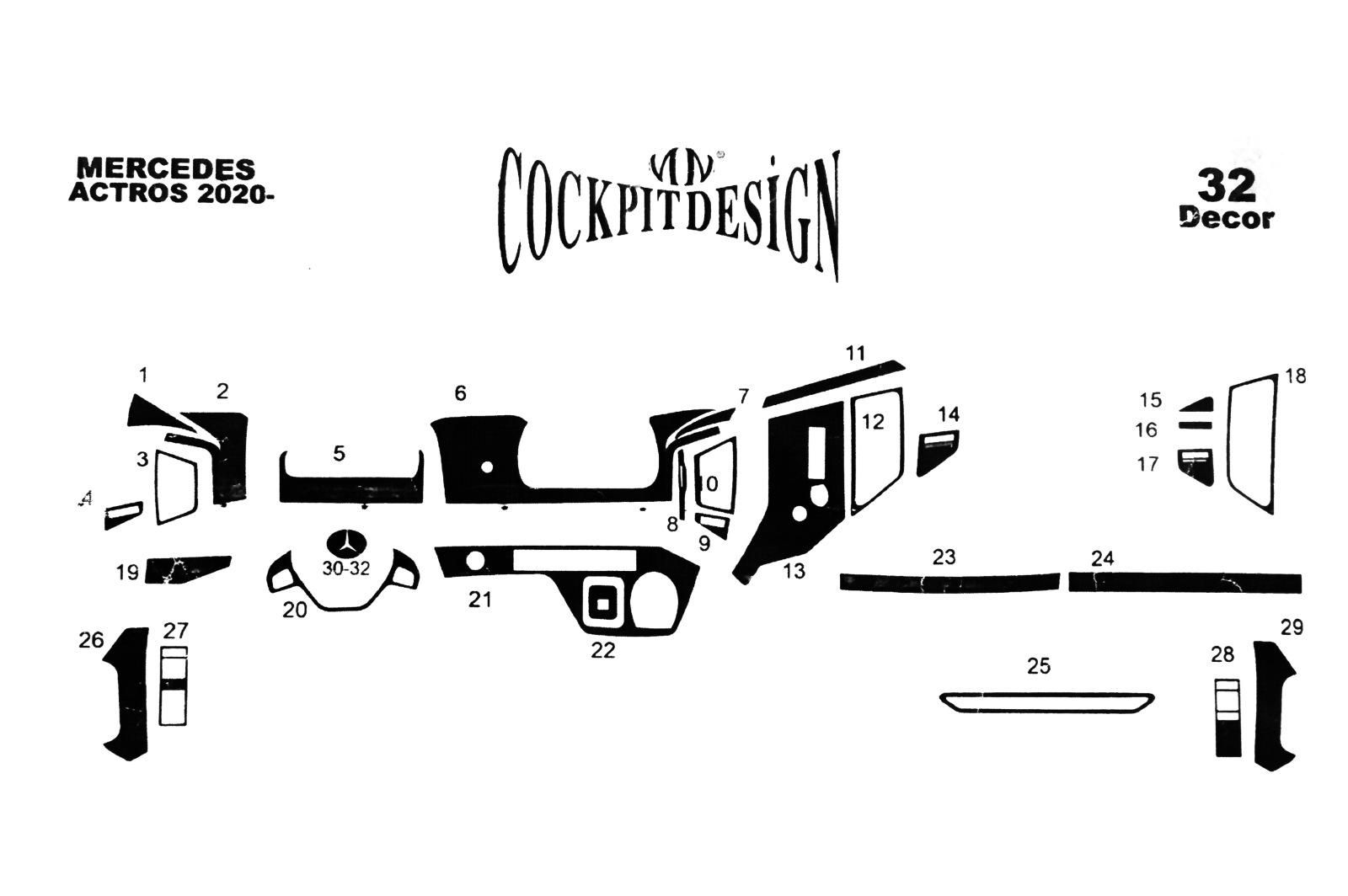 Накладки на панель Mercedes Actros MP5 (2020-...) (Meric, 32 деталей) 94000057