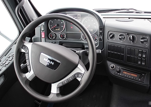 У салоні MAN TGL 12.180 можна звернути увагу на добротні матеріали оздоблення та пристойний рівень комфорту. Крім цього внутрішнє оздоблення машини порадує такими перевагами: