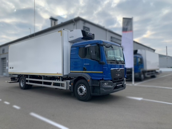 Екстер'єр MAN TGM 18.250: Міцна рама з оптимальним профілем для надбудов, центральний вхід з кутом відкриття дверей 89° і неслизькими сходинками. Аеродинамічні елементи та освітлення підвищують маневреність у місті. Широкий огляд завдяки великому полю зору та низькому звису.